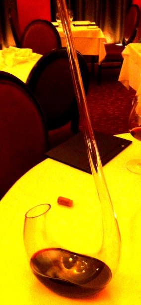 I'm totally smitten with this decanter. It's over 2 feet tall and the wine comes out of the narrow end. Worth the corkage by itself.