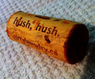 The (rockingly designed) bottle of DL’s “Hush” Rosé proclaims that it’s “all pinot noir, but maybe not.” Thanks. Turns out it’s actually only 30% Pinot Noir, as well as 50% Cabernet Franc, 9% Pinot Blanc, 5% “Cab/Merlot” and 6% “hush hush”…hopefully that refers to another secret grape and not turpentine or arsenic or something. (UPDATE: a big thanks to Sasha in the comments section of this post, who clarified that the 6% “hush hush” is actually Gewürztraminer. Not arsenic. Phew.) As you can see in the above picture, the Hush is a shockingly vivid colour in the glass that’s halfway between salmon pink and fire engine red, a hue that the clear bottle (hint: clear normally means intended for early consumption!) displays to full advantage. It’s not overly aromatic, with understated rose (NOT rosé) notes quietly mixing with sour berries and a rain-like smell, but it’s bright, crisp and lively on the palate. The taste can best be described as RED, all crabapple, raspberry, strawberry, cranberry and red currant underscored by a streak of minerality. Like most rosés, the Hush is fairly light-bodied, with vibrant acidity, a bare hint of sweetness and a clean but slightly chemical finish. I can’t quite put my finger on why, but it seems a little manipulated to me, a little artificial. Cherry LifeSavers almost taste like real cherries, but not quite; this is like a rosé LifeSaver. For a $20 bottle of rosé, I’m not overly fussed about this — I like LifeSavers — but it’s always in the back of my mind as I drink this bottle.