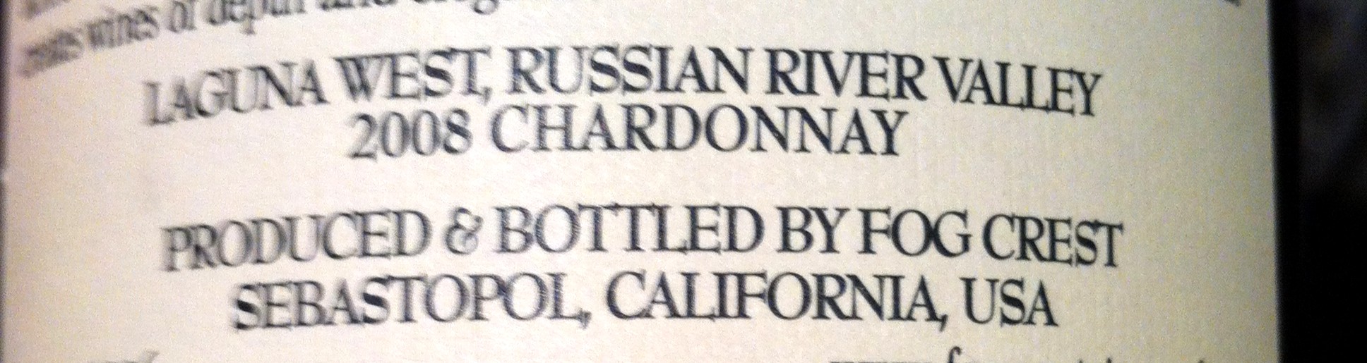 The Laguna West Chardonnay is Fog Crest’s introductory-level Chard and appears to be made from grapes purchased from local growers instead of those grown in FC’s own vineyards. If you were ever curious about how to tell whether the grapes in a wine were grown by its producer or not, one way you can decipher the grapes’ origin is by looking at how the production of the wine is described on the back label. The back of this bottle says that the Laguna West was “Produced and Bottled by Fog Crest”; in California at least, the words “produced and bottled” mean that Fog Crest has fermented (not necessarily grown) at least 75% of the wine itself. If FC had also grown the grapes, the back label wording would almost certainly have been “Grown, Produced & Bottled” or simply “Estate Bottled”, each of which signifies that the grapes for the wine came from the producer’s own vineyards. (Be particularly on the lookout for back labels that say a wine was “Bottled & Cellared” by the producer, which means they didn’t grow the grapes OR make the wine, but just stuck pre-made wine in their own bottles. This doesn’t necessarily mean the wine is bad, but to me at least it does reduce the authenticity factor a little bit.)