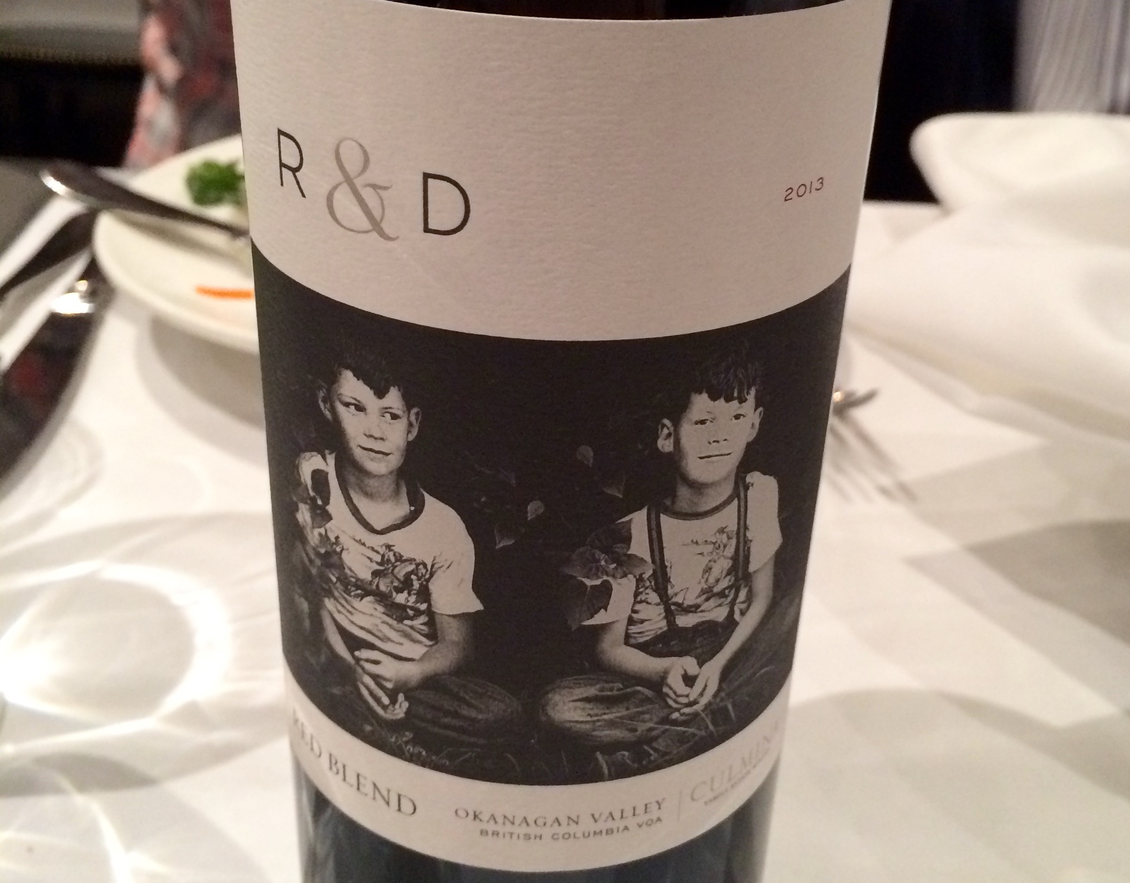 This wine was just bottled in March and is not yet released to the public, although it will be next week, so keep an eye out! You won’t be able to miss it, because the label contains a picture of Don Triggs and his twin brother Ron when they were 9 years old. The name “R&D” stands for both the research and development that were required to get Culmina to its present state and for “Ron and Don”. The R&D is intended to be a slightly lighter, earlier drinking, less expensive cohort to Culmina’s top red Hypothesis, although the latter is a true blend of Merlot, Cabernet Sauvignon and Cabernet Franc while the former is much more Merlot-dominant. The R&D goes through a shorter maceration than the Hypothesis, sees less time in oak and is aged in older barrels that transfer less flavour and tannin, so it is brighter and fruitier than its older brother.