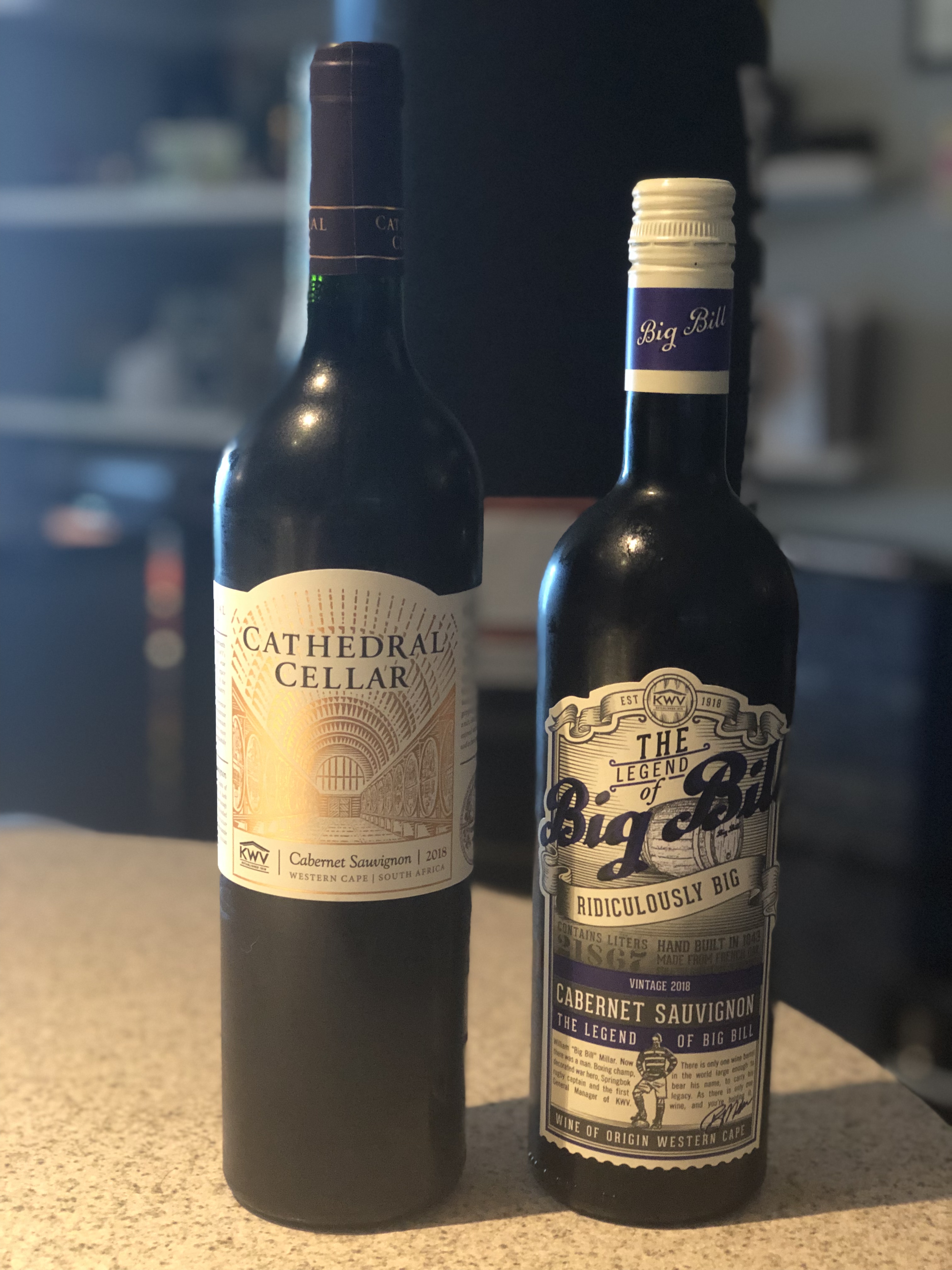 2018 KWV Cathedral Cellars Cabernet Sauvignon (~$16): In 1997, KWV went from being an all-powerful winemaking co-operative with legislative control over the entire Cape wine industry to a private company, forced to compete like everyone else. It has not been easy. Tim James flatly states that KWV’s offerings “have not impressed much”, but tentatively allows for one exception across their many labels: Cathedral Cellars! He describes these wines as “very good, tending toward a polished, recognizably new-world style: ripe and rich, dense and extracted, with obvious fruit and generally obvious oak, but well if softly structured”. This is pretty much bang on by my reckoning. A perfect deep ruby in the glass. The nose is indeed polished compared to the Big Bill, moderate intensity black plums and raspberries, red bell pepper, instant coffee, chocolate-covered raisins, pipe tobacco, and hints of burnt sage, vanilla wafer, tea tree oil, even a little caress of purple flowers (violets?). This is medium-bodied and quite herbaceous, rather recalling the best Chilean examples, with some of the attendant nuance and finesse. Gritty mouth-filling tannins, and that coffee note becomes more and more prominent. The alcohol is a touch hot. Still, this might just be the best value to be found in this set of wines. 88+ points
