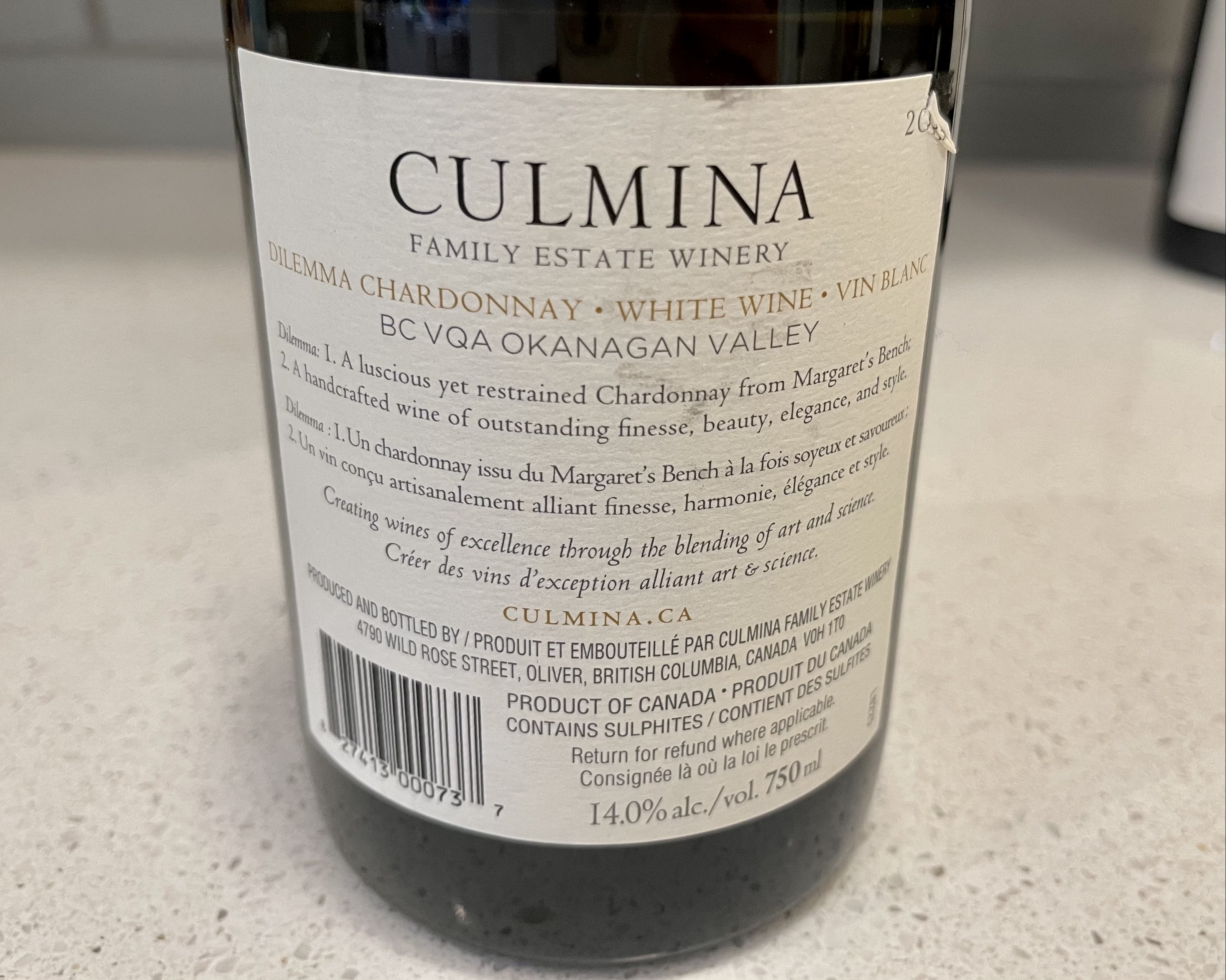 2017 Culmina Dilemma Chardonnay ($31 cellar door)